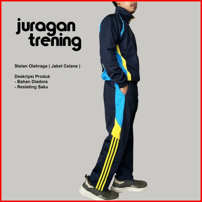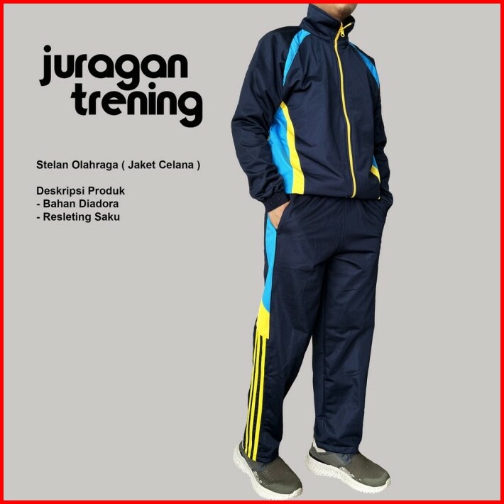 Setelan Pakaian Olahraga Pria Dewasa Jaket Celana Panjang Training Gar