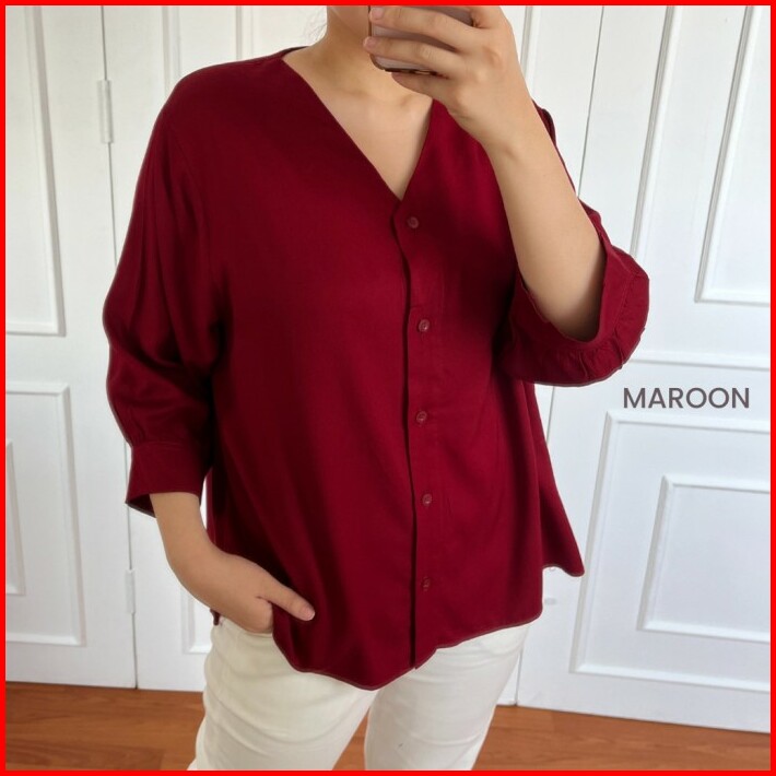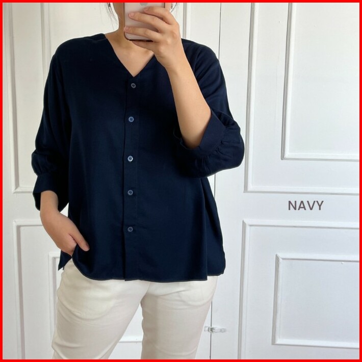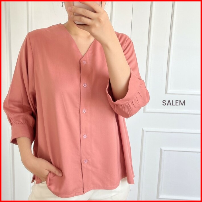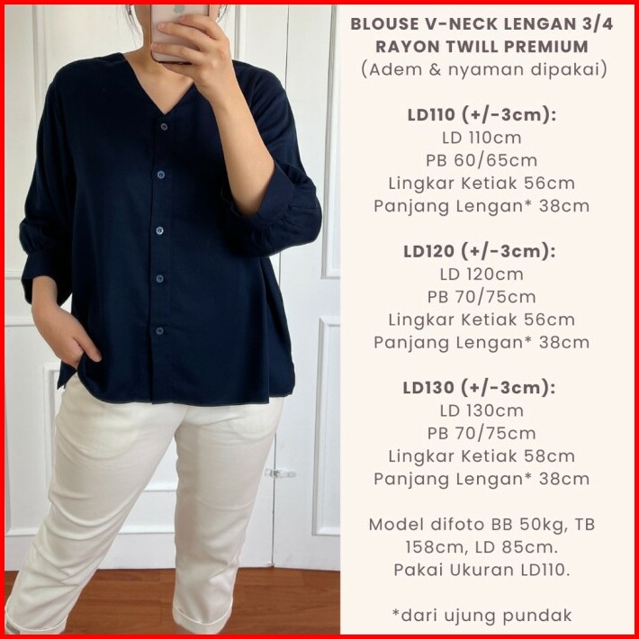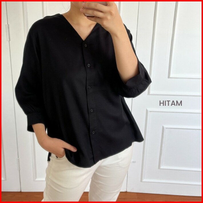 Etalase 28 Blouse V-neck Lengan 3 4 Rayon Twill Premium Jumbo
