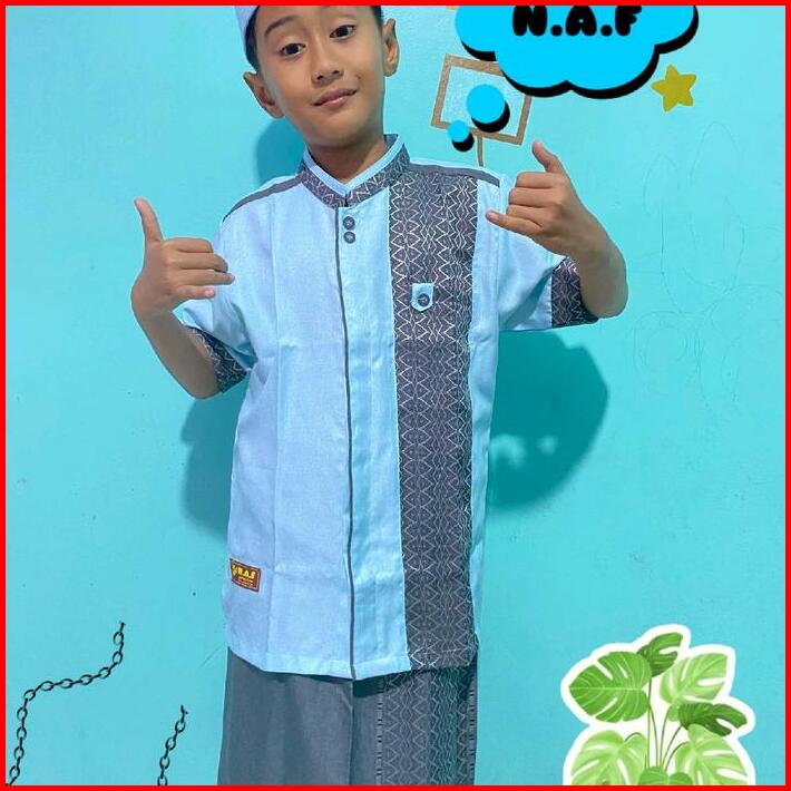 Baju Koko Anak Sarkoci By Naf Baju Celana Muslim Nyaman Katun Peci Sarung Panjang Turki Setelan Polos Navy Motif Kain