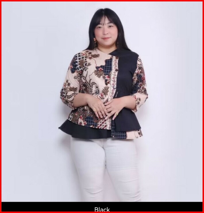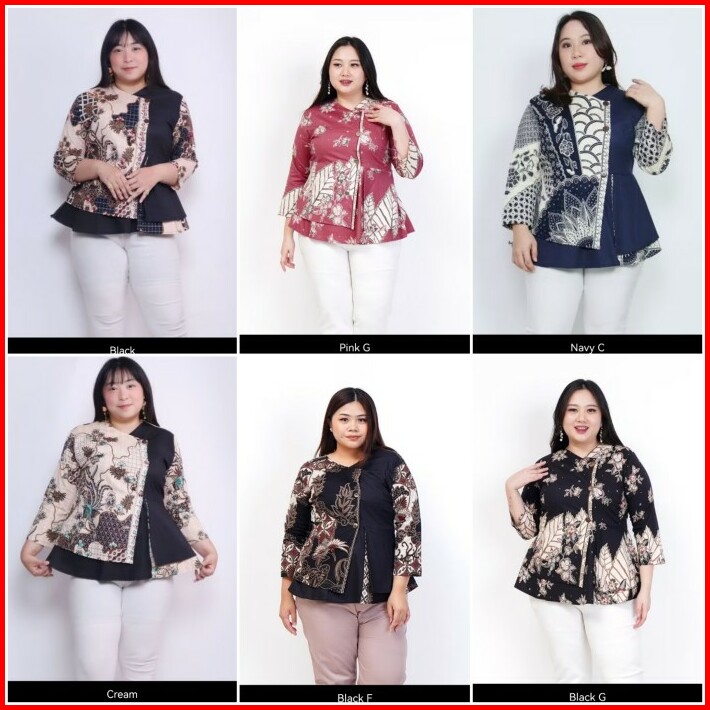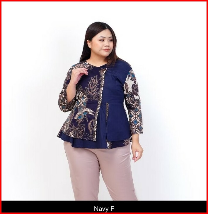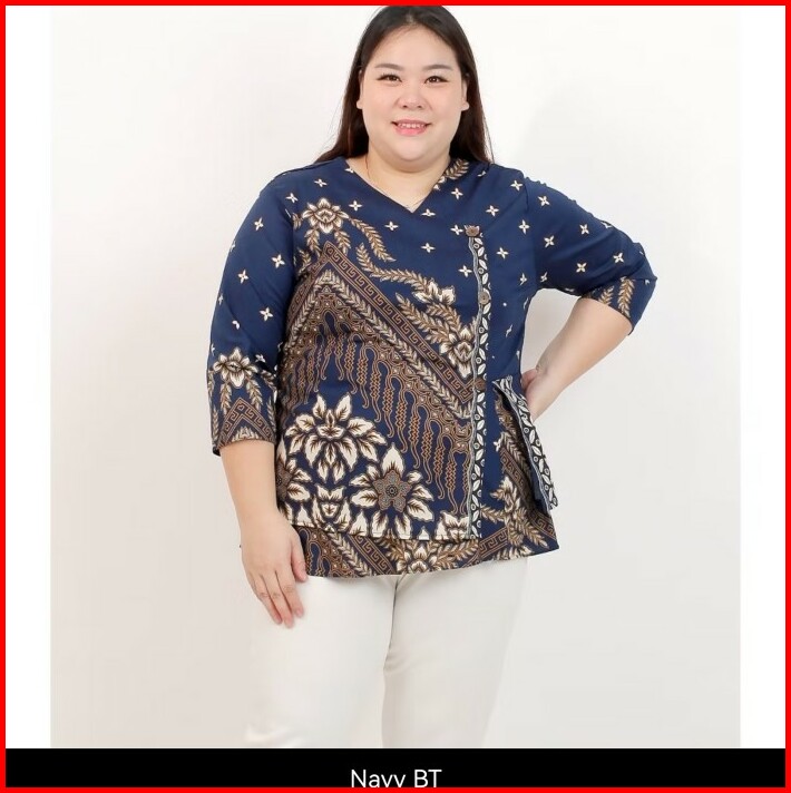 Jumbo Blouse Wanita Katun Stretch Motif Batik Tangan Panjang Ld 120