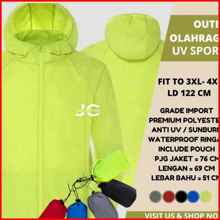 Jumbo Jaket Olahraga Anti Uv Hoddie Unisex Trendy Size 3xl Ld 122