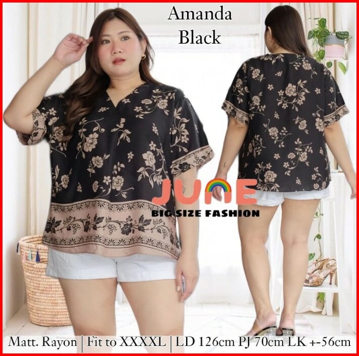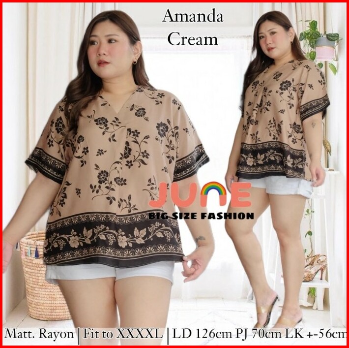 Jumbo Blouse Wanita Rayon Motif Tangan Pendek Ld 126