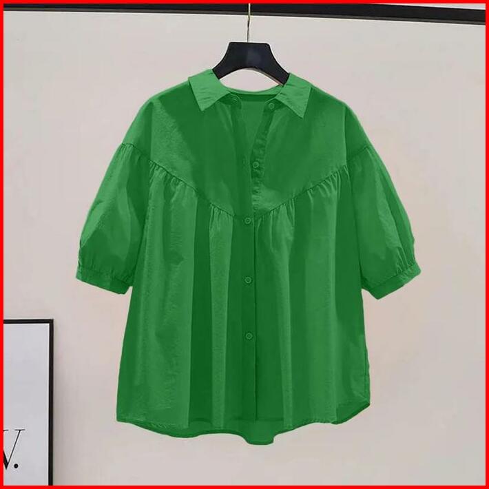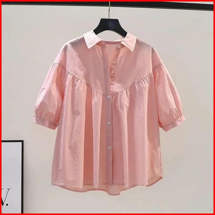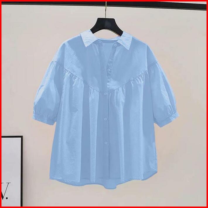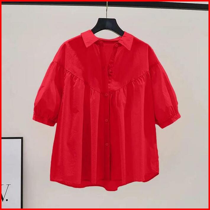 142-kemeja Blouse Oversize Jumbo Atasan Wanita Terbaru Kemeja Wanita Kekinian Katun Basic Cantik