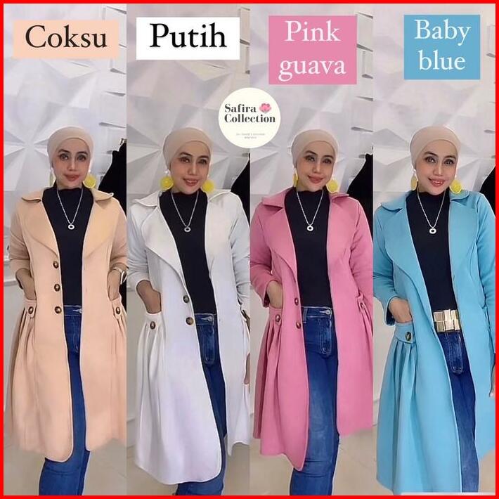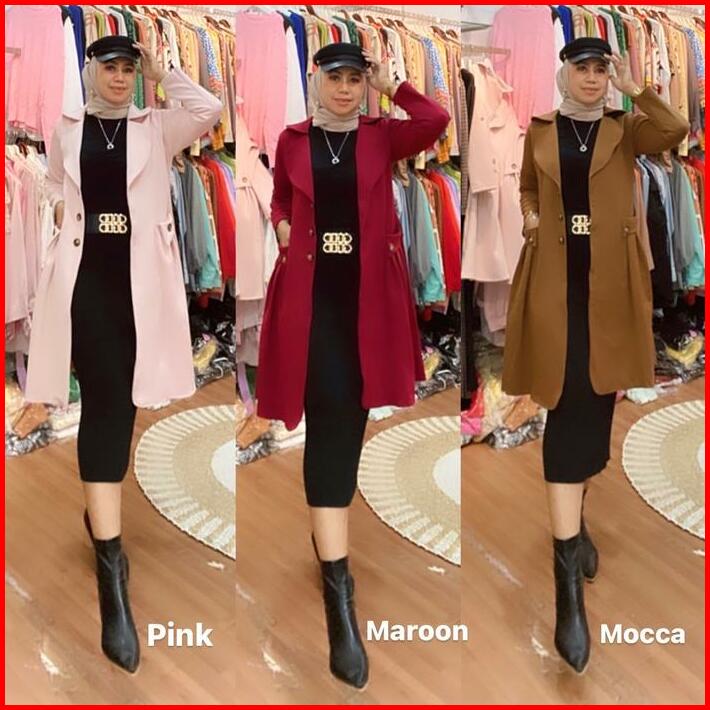 Monza Long Blazer Bahan Suede Jaket Panjang Wanita Oversize Lembut Zipper