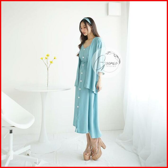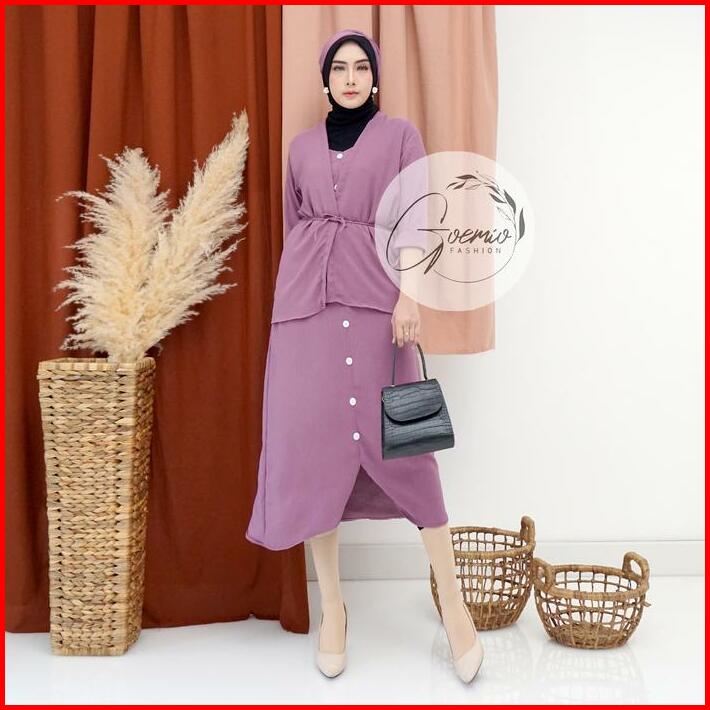 Bless One Set Ria Setelan Dress Outer Blazer Wanita Polos Fashion Style Free Bando