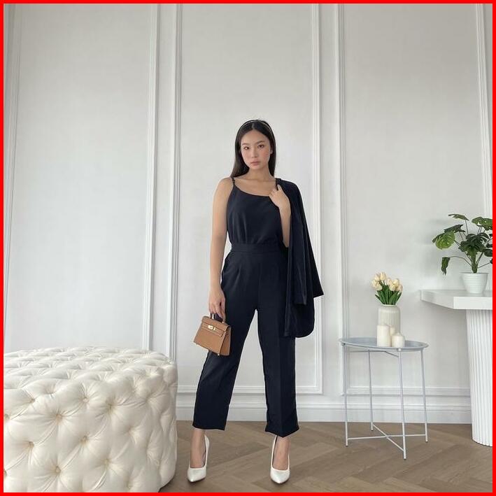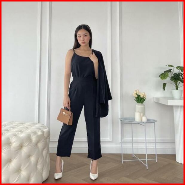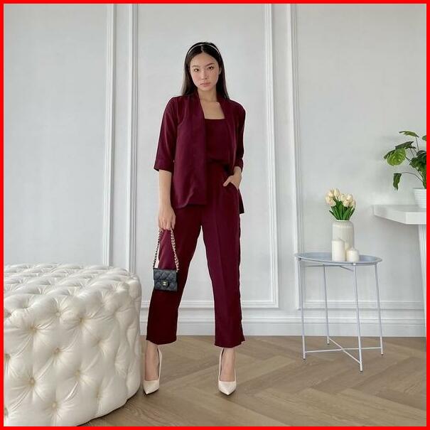 Bless Hana 3 In 1 Set Blazer Lengan 3 4 Celana Panjang Crinkle Setelan Formal Wanita Atasan Simple Linen Casual Baju