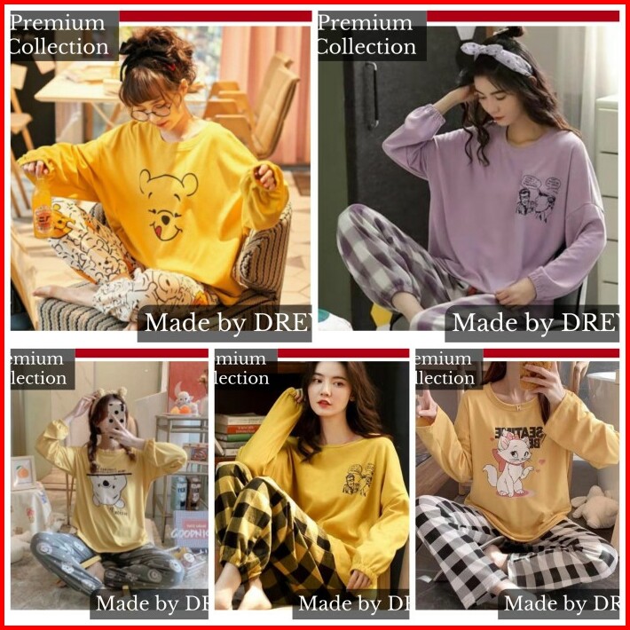 Baju Tidur Wanita Lengan Panjang Piyama Karakter Wanita Set Import