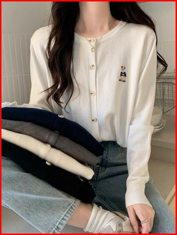 Beary Jeans Bj181 Korean Style Bear Cardigan Knitted Sweaters Women Kardigan Wanita Motif Beruang Long Sleeve Import