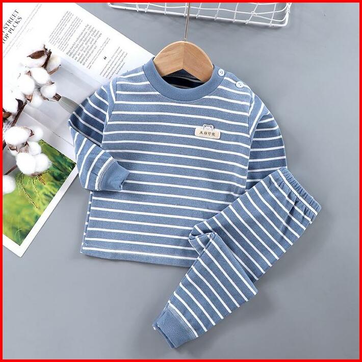 Mibaby Setelan Tidur Lengan Panjang Baju Tidur Anak Setelan Piyama Set Lengan Panjang Kancing