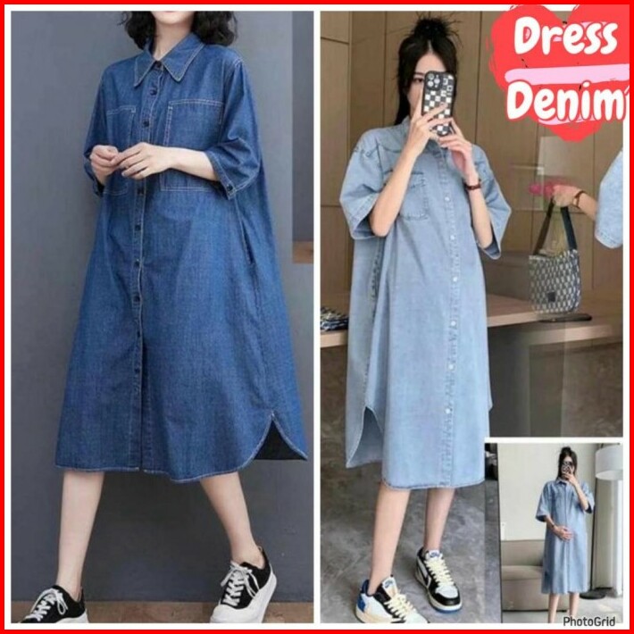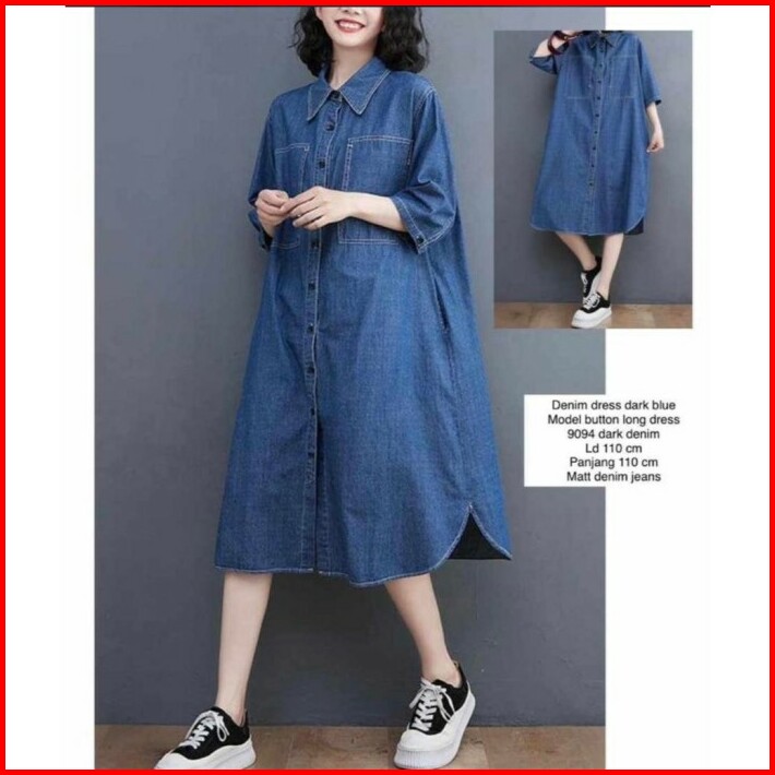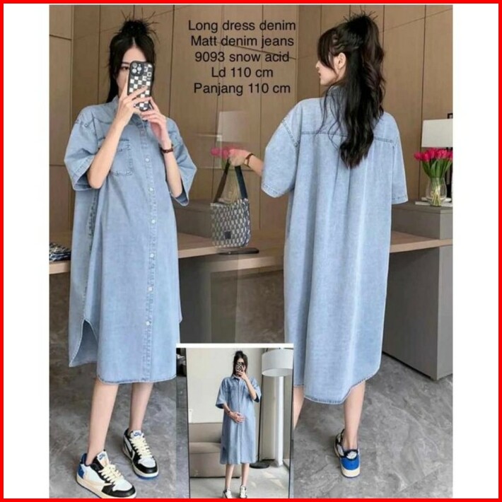 Long Dress Denim Snow Acid Dress Oversized Friendy Bumil Busui Denim Wanita Kekinian Jeans Super Adem 9093 9094