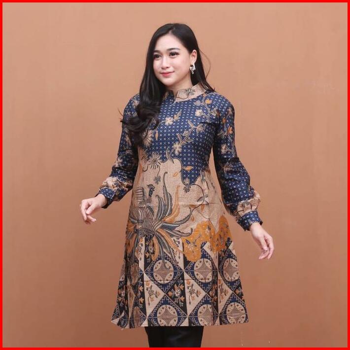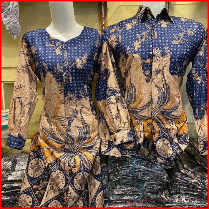 Atasan Tunik Wanita Batik Couple Kemeja Batik Pria Lengan Panjang Motif Ayam Biru Baju Seragam Keluarga Katun