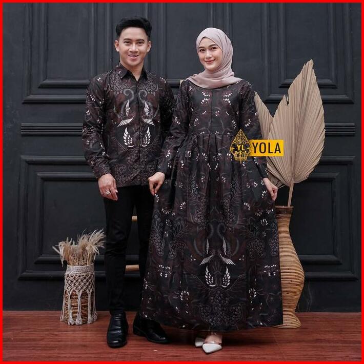 Set Gamis Couple Polyester Gamis Busui Batik Couple Pasangan Kekinian 03
