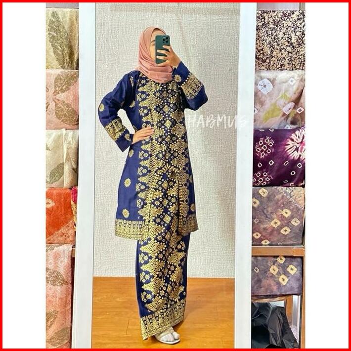 Couple Setelan Batik Songket Palembang Mewah Elegant Model Kurung U