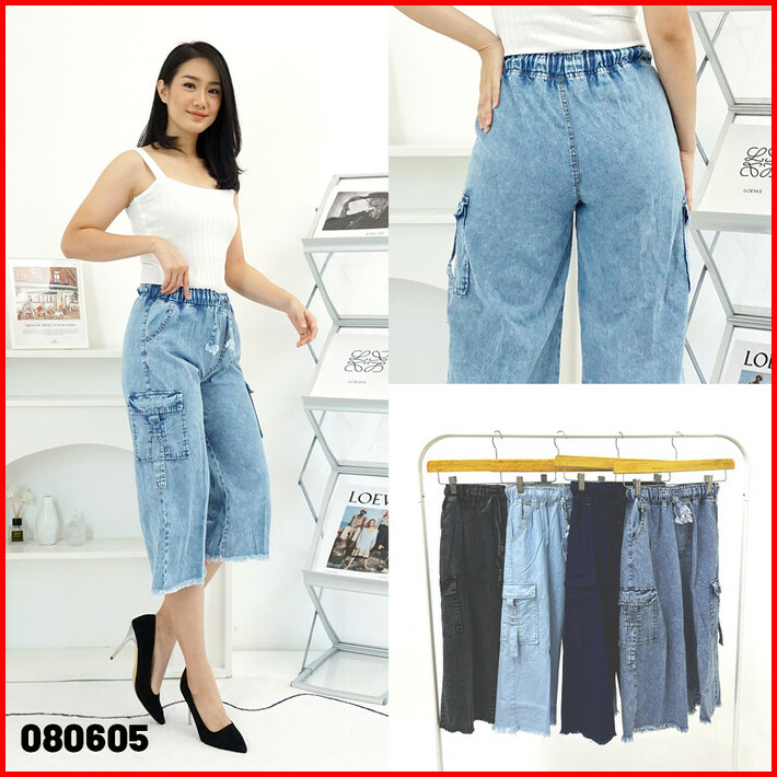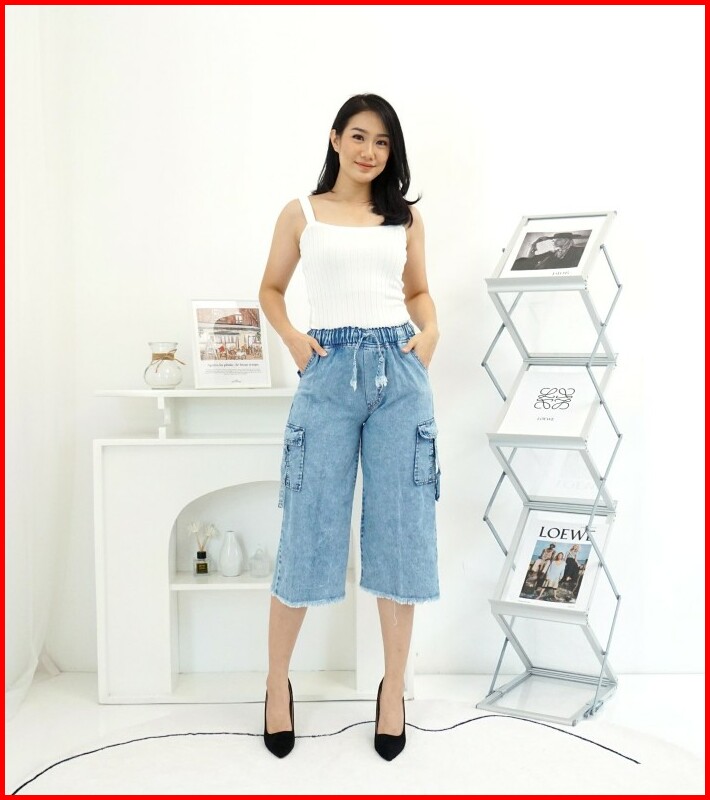 Celana 7 8 Kulot Wanita Cullote Cewek Jeans Cargo Short Denim Tanggung