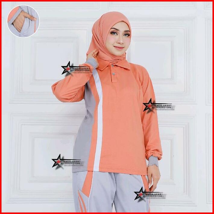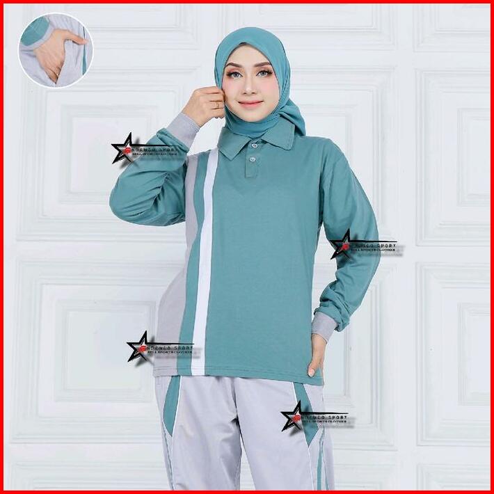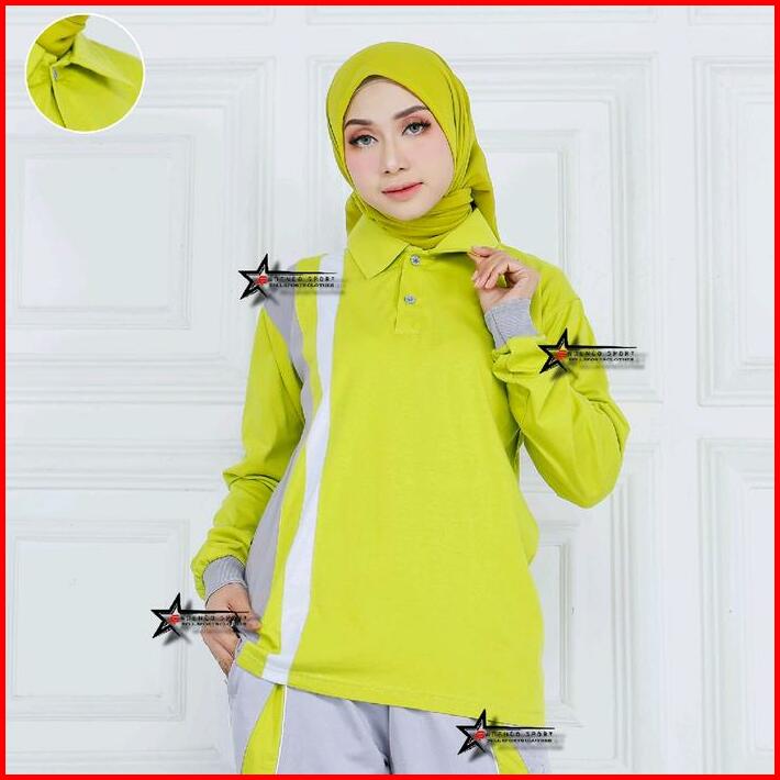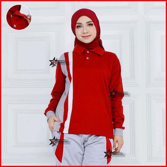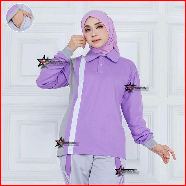 Baju Olahraga Senam Lengan Panjang Wanita Atasan Kaos Krah Seragam Olahraga Sport Sport Sport