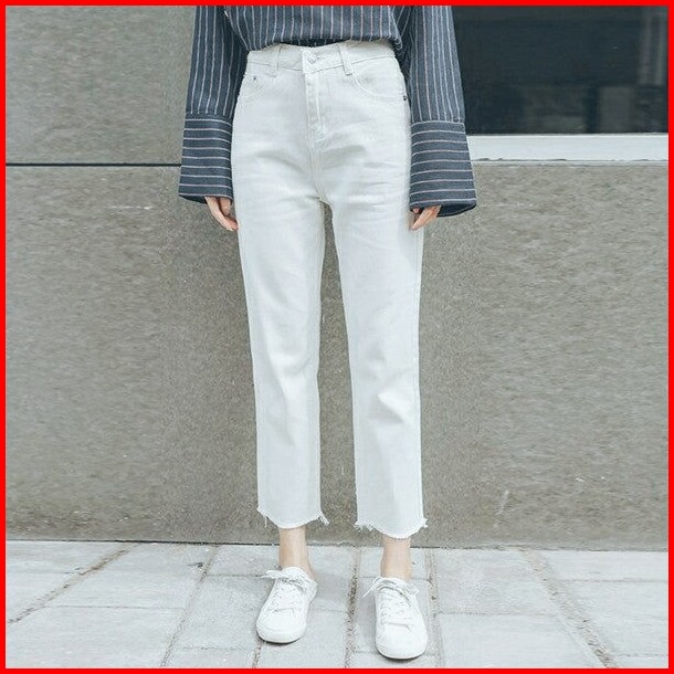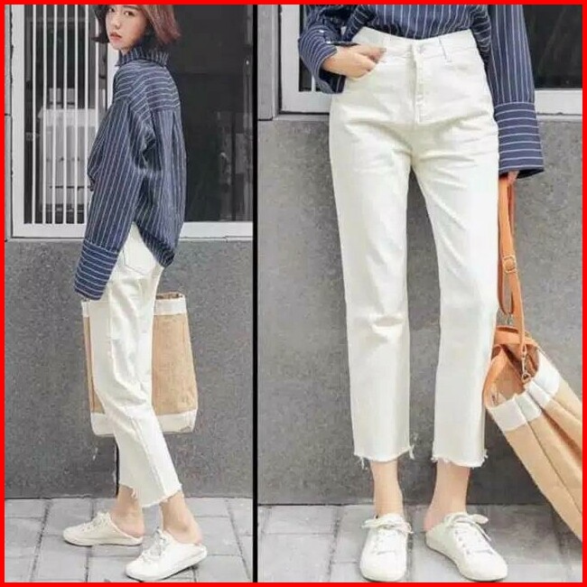27-34 Unfinished Boyfriend White Celana Jeans Wanita Kekinian Size
