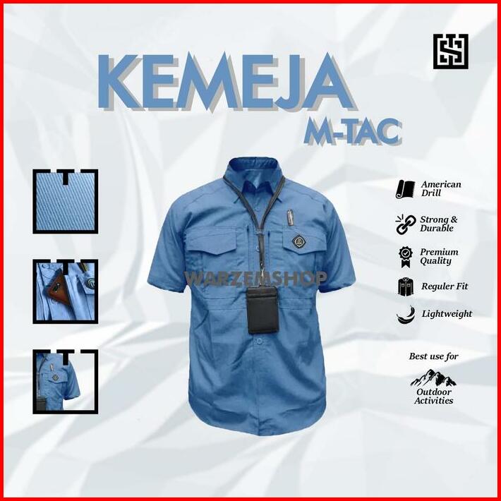 Kemeja Pria Lengan Pendek Biru Muda Tactical