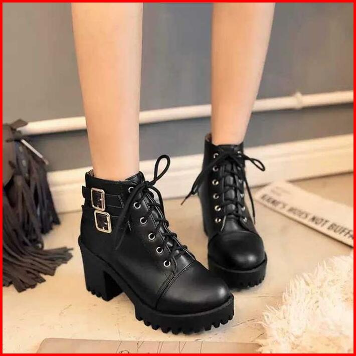 Sepatu Boot Heels Wanita Trendy Best Seller Sepatu Ziperr Yks Square Toe Boots Shoes