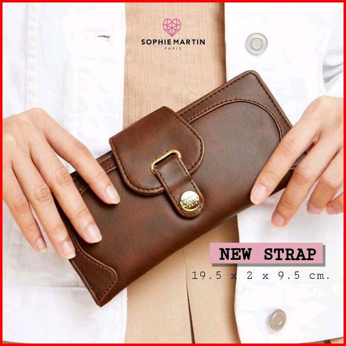 Sophie Martin New Strap Dompet Panjang Lipat Wanita Kulit Pu Dompet Lipat Uang Kartu
