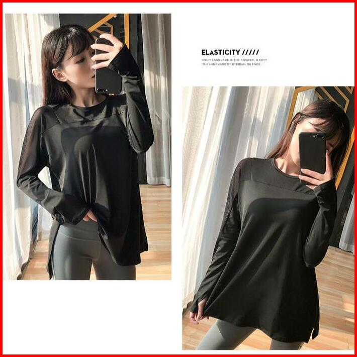 Lq59 Baju Atau Atasan Olahraga Wanita Lengan Panjang Sport Kaos Long Sleeve Gym Fitness Yoga Senam