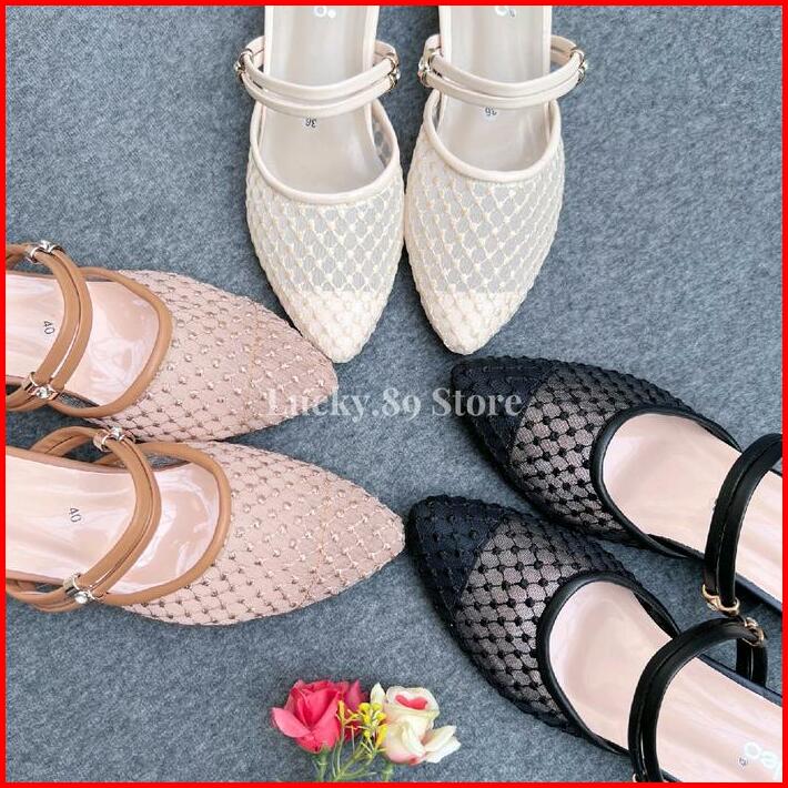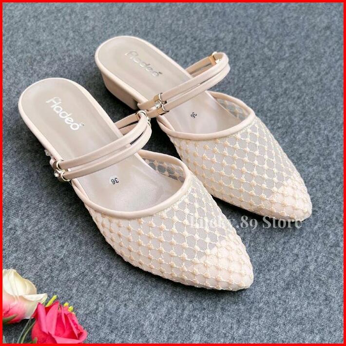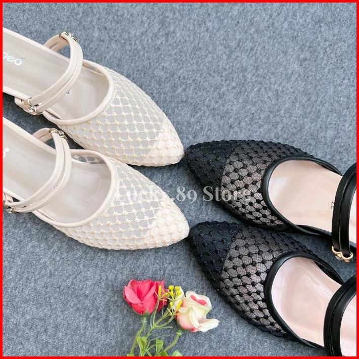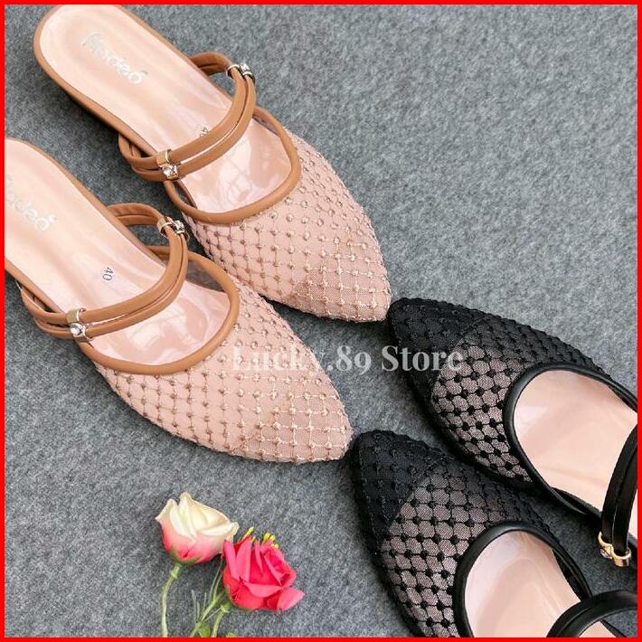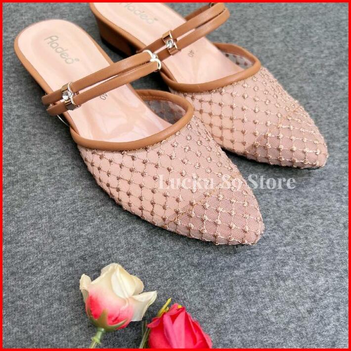 Fladeo Sandal Wanita Brukat Heels 3 Cm Sendal Cantik Mewah