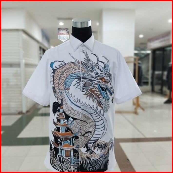 Kemeja Pria Lengan Pendek Bordir Naga Full