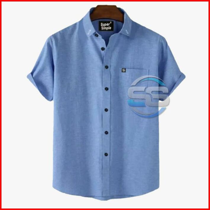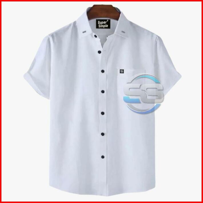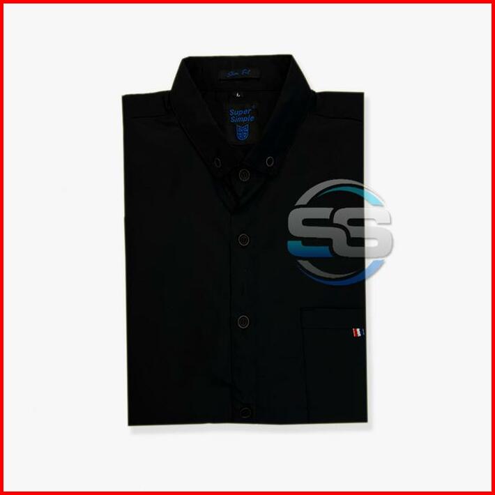 Kemeja Hitam Pria Lengan Pendek Baju Casual Formal Slimfit Motif Polos Katun Oxford Poplin Premium Distro Best Quality S