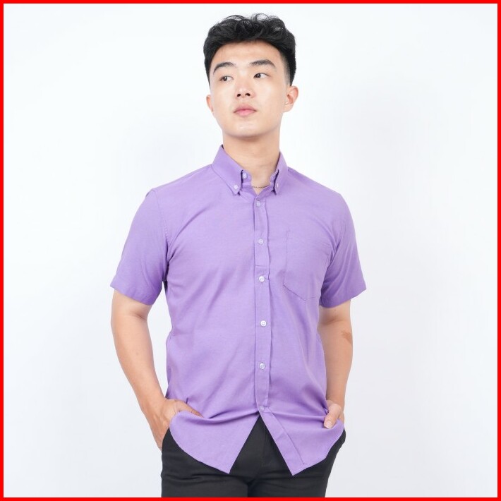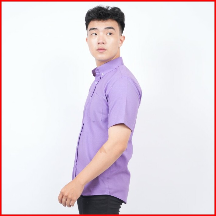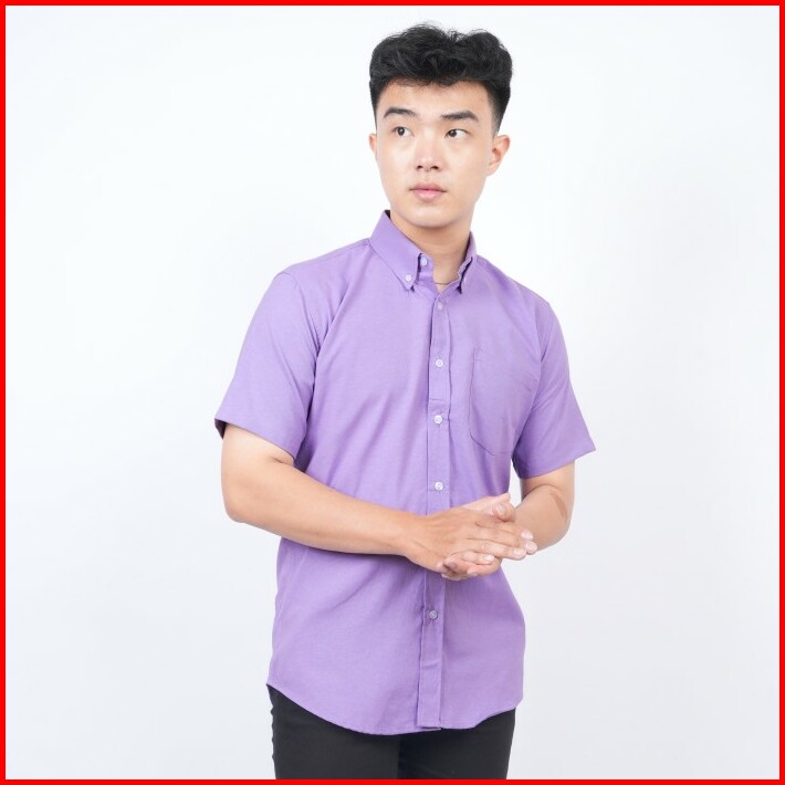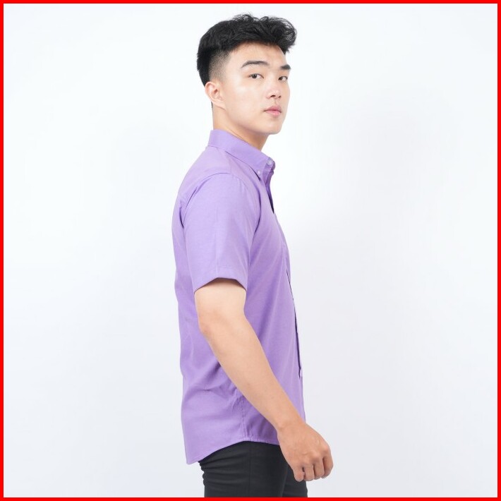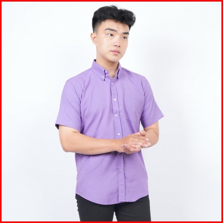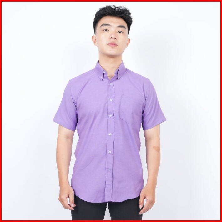 Kemeja Pria Lengan Pendek Polos Lavender Ungu Oxford Slimfit Casual