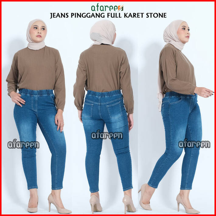 Jeans Skinny Wanita Pinggang Karet Stretch Celana Jeans Wanita