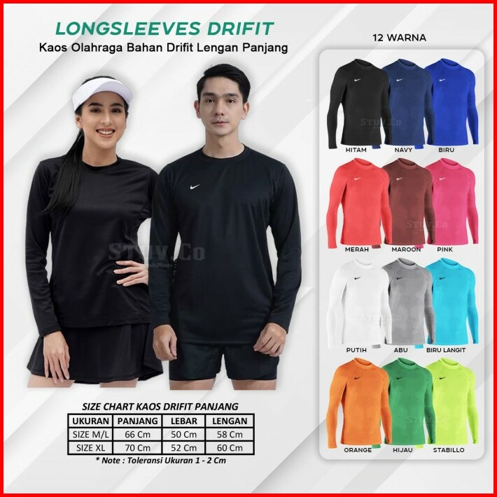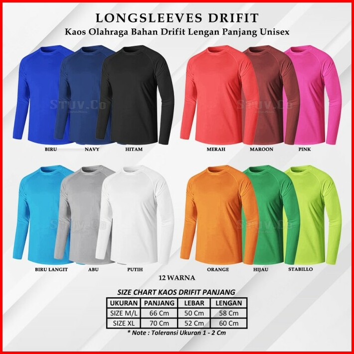 Kaos Olahraga Baju Jersey Lengan Panjang Polos Dry Fit Pria Wanita