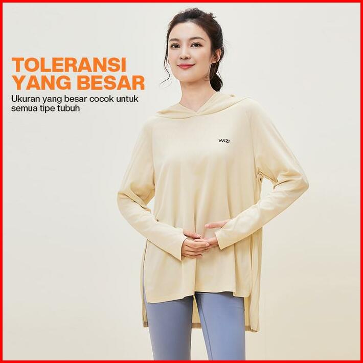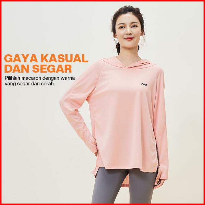 Wizi Atasan Olahraga Wanita Lengan Panjang Baju Gym Kaos Sport Hoodie Longgar Bernapas
