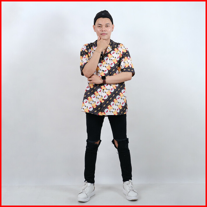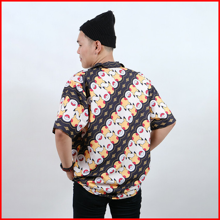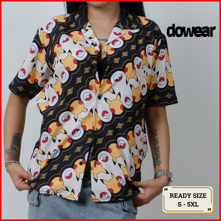 Special Dowear X Pikachu Baju Kemeja Laki Laki Motif Batik Pria Lengan Pendek Modern Printing
