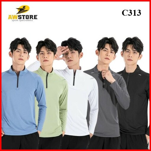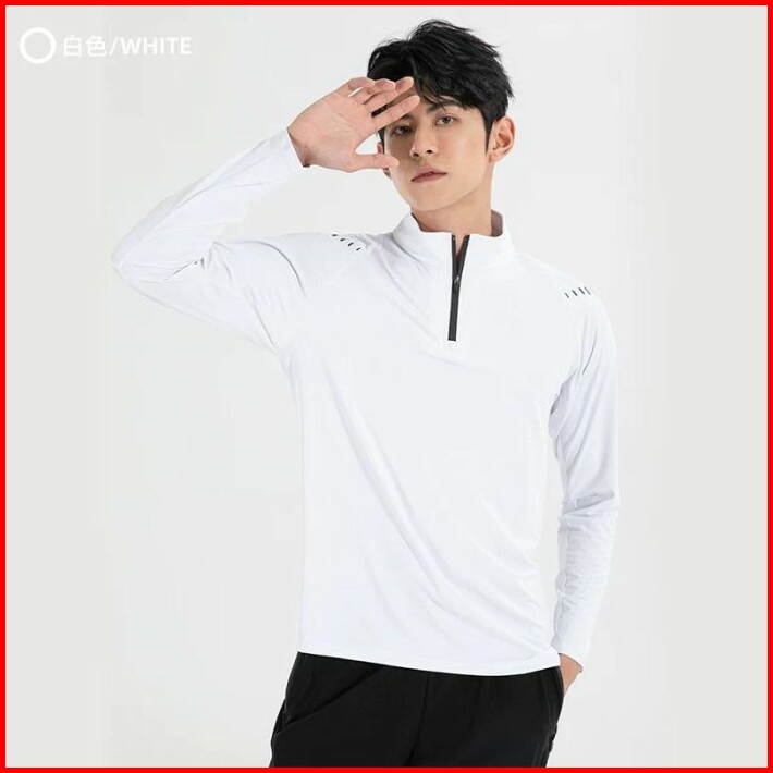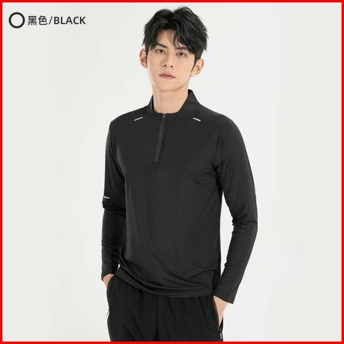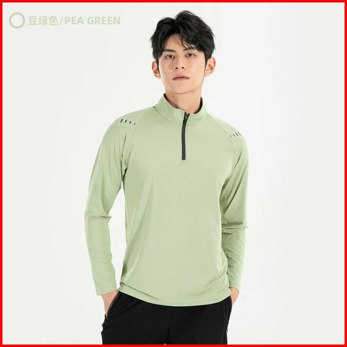 Baju Olahraga Pria Lengan Panjang Zipper Kaos Sepeda Golf Gym Lari