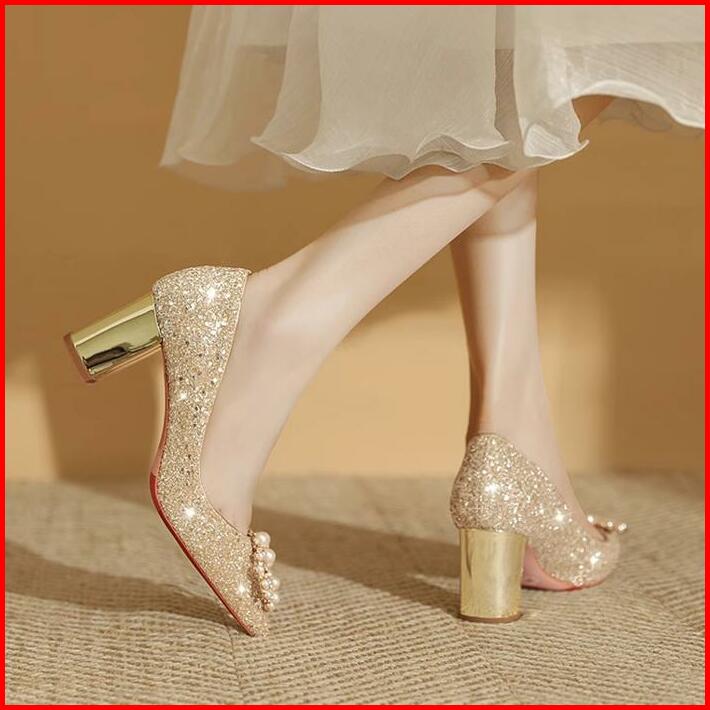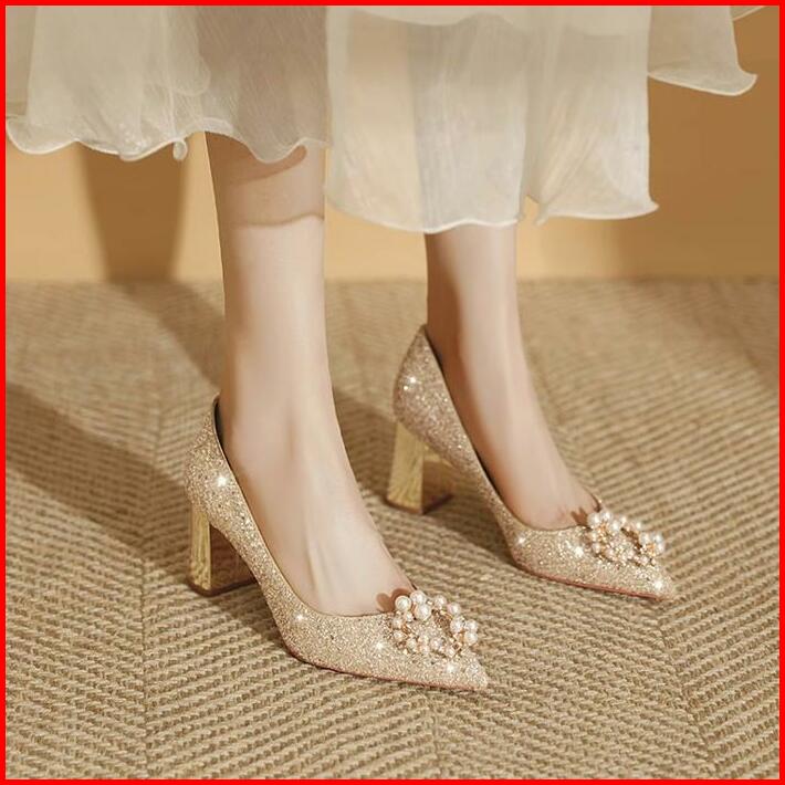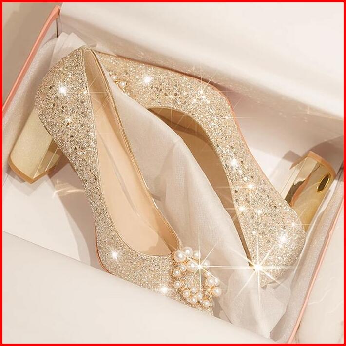 1028 Silver 6.5cm Size 34-42 Sepatu Wanita Sepatu Hak Tinggi Glitter Heels Pesta
