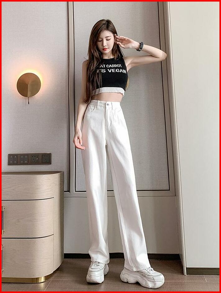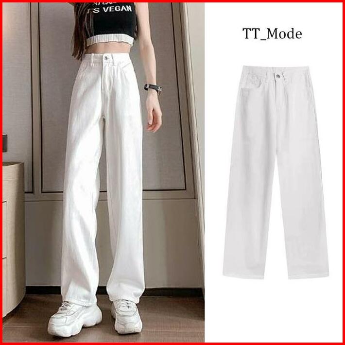 Kekinian New Style Putih Celana Jeans Panjang Wanita High Waist Kulot