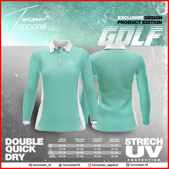 Baju Golf Polo Shirt Dryfit Lengan Panjang Kaos Printing Jersey Olahraga Wanita Sport