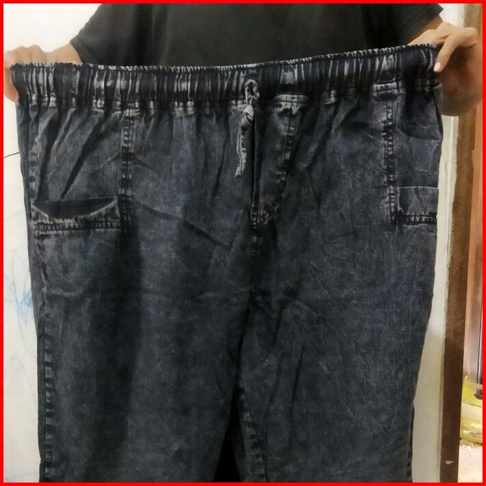 Celana Boyfriend Wanita Korean Jeans Super Jumbo 7 9 Pinggang Karet Big Size Baggy Pant Panjang Standar