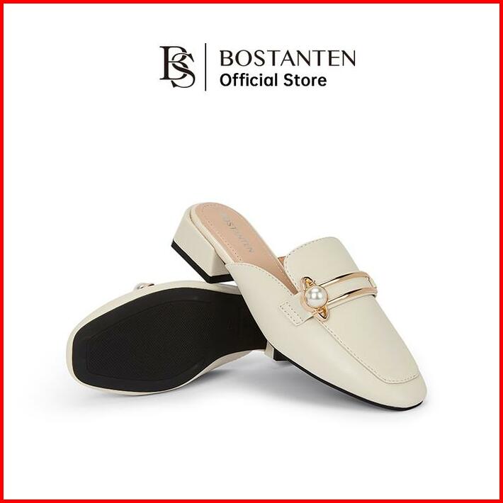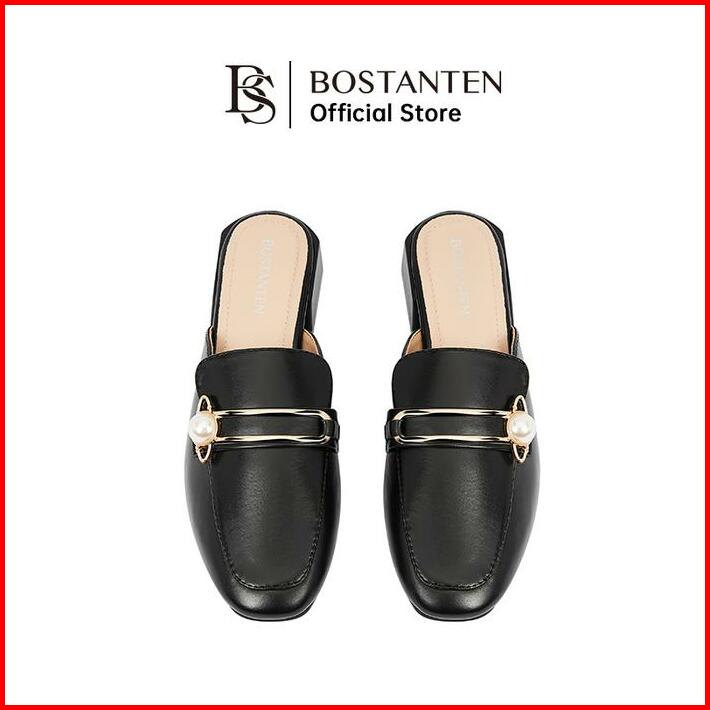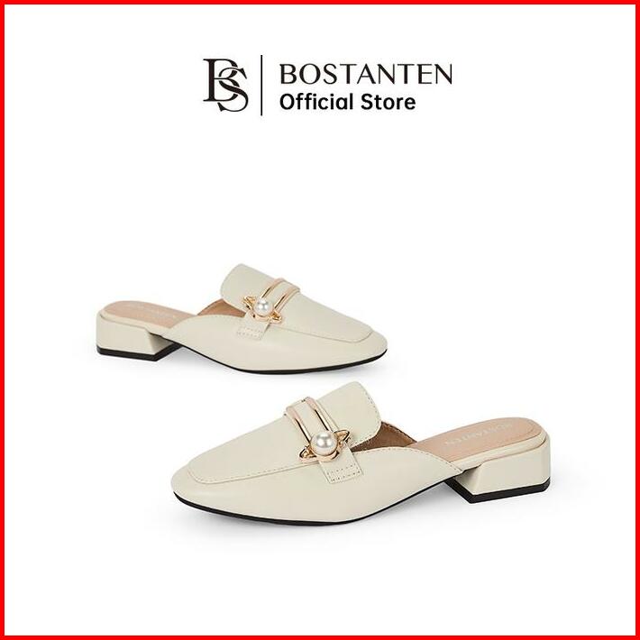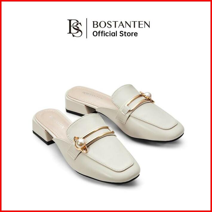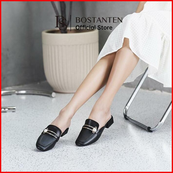 Bostanten Sepatu Hak Tahu Sepatu Mules Flatshoes Heels Sepatu Tunggal Dengan Tumit Berat Wanita Kepala Persegi Sepatu Mu