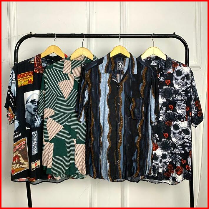 Kemeja Motif Santai Model Printing Kemeja Pria Pendek Bahan Rayon Casual Nyaman Katun Baju Cowok Allsize Ukuran M Lembut