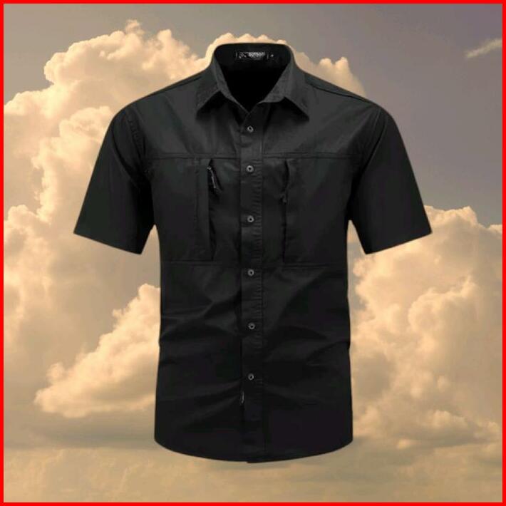 Kemeja Tactical Outdoor Paspampres Pria Wanita Lengan Pendek Hitam Katun Terbaru