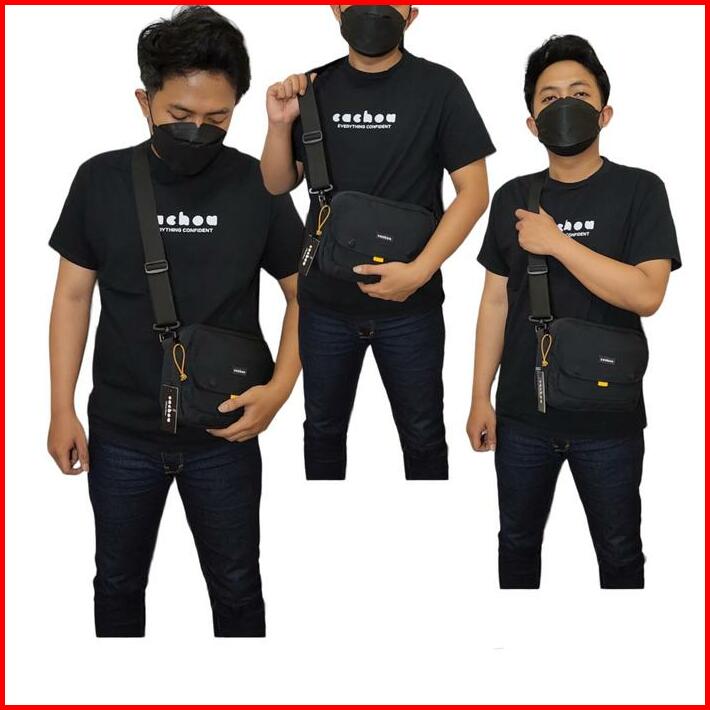 Cachou Tas Zixtry Black Slingbag Selempang Kanvas Pria
