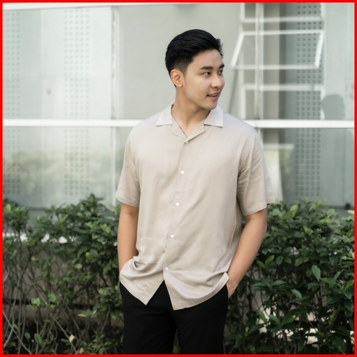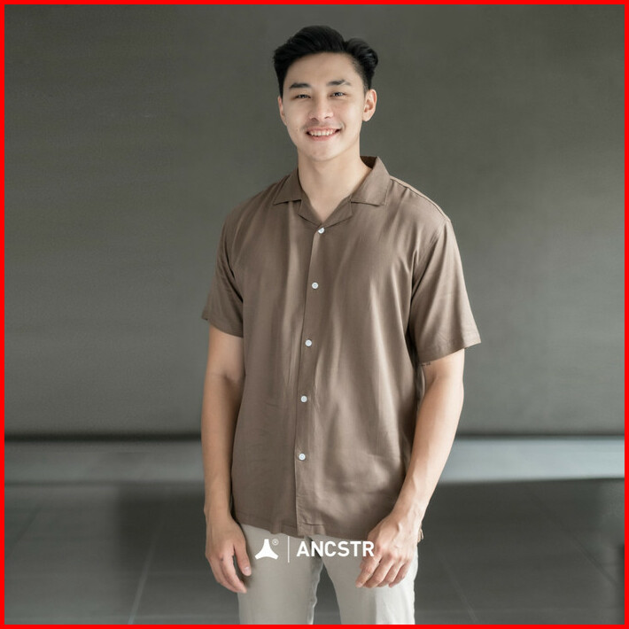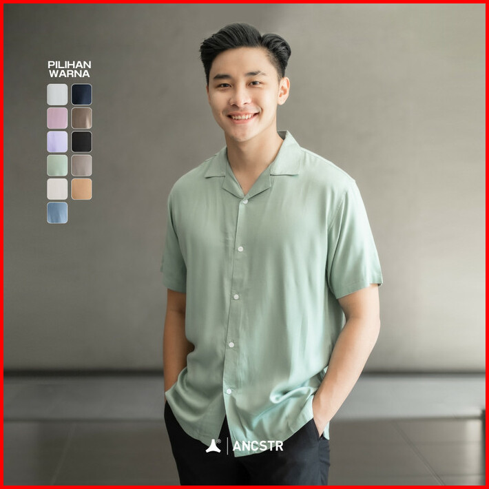 Ancestor Kemeja Pria Kasual Polos Lengan Pendek
