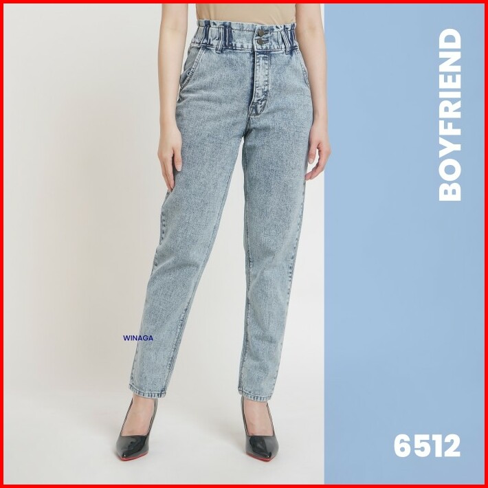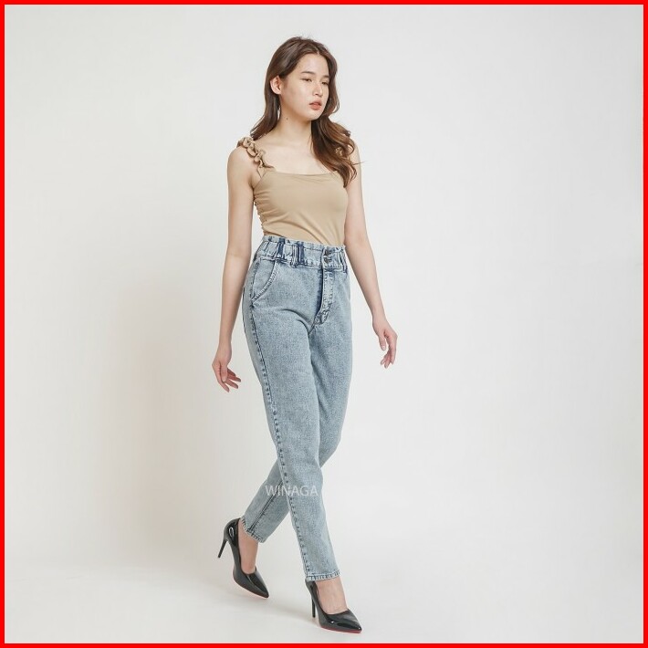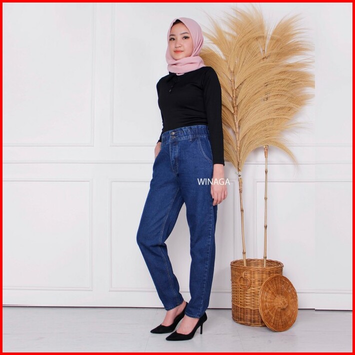 Winaga- Highwaist Boyfriend Jeans Pinggang Karet