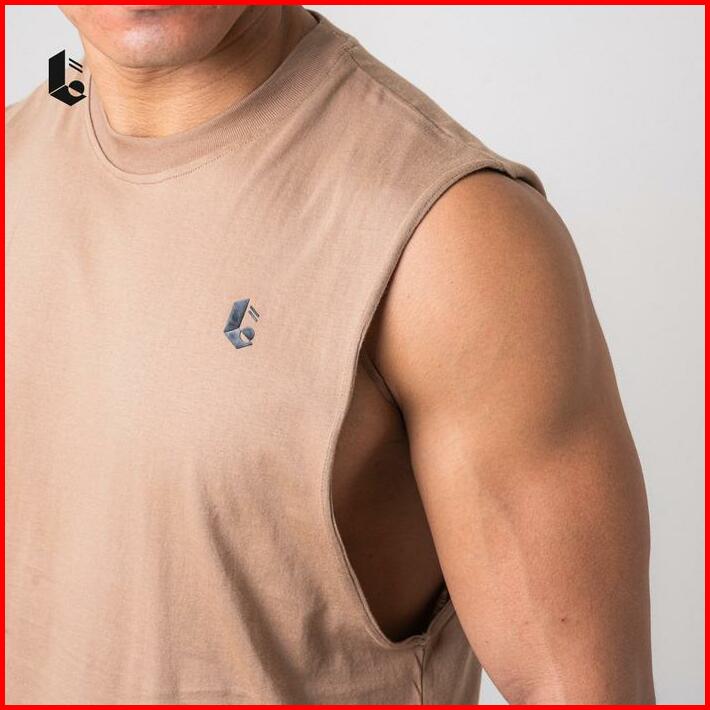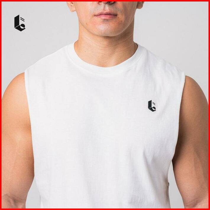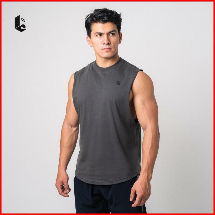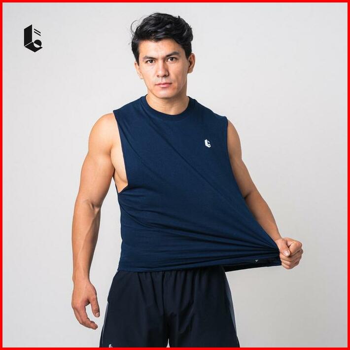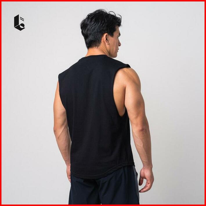 Lockerwear Tank Top Olahraga Pria Singlet Low Cut Kaos Katun Sleeveless Sport Gym Fitness Jogging Running Workout