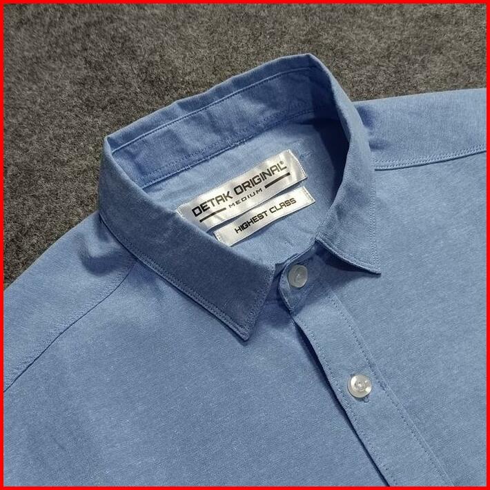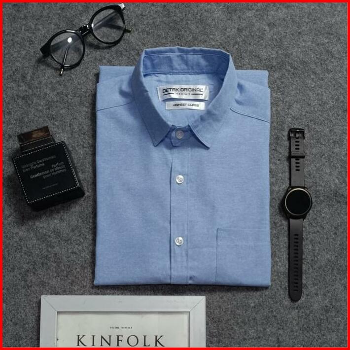 Detak Original Kemeja Polos Pria Lengan Pendek Cotton Oxford Baby Blue