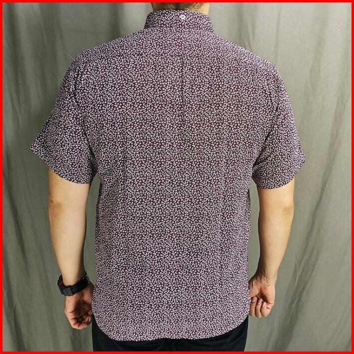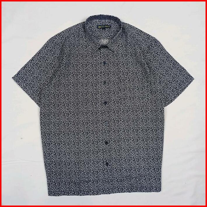Salice Paolo Kemeja Pria Print Pendek Reguler Motif Magnet Navy Merah Casual