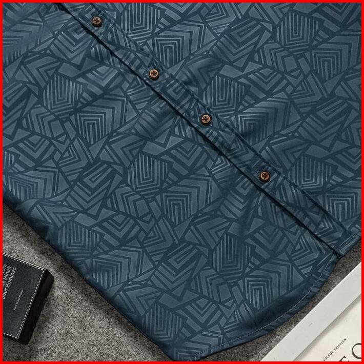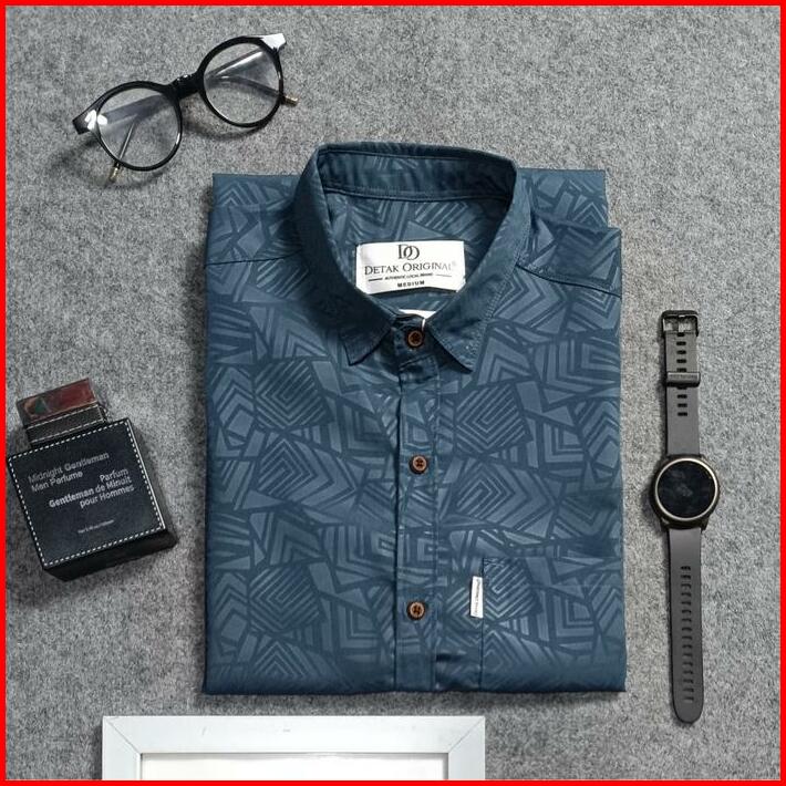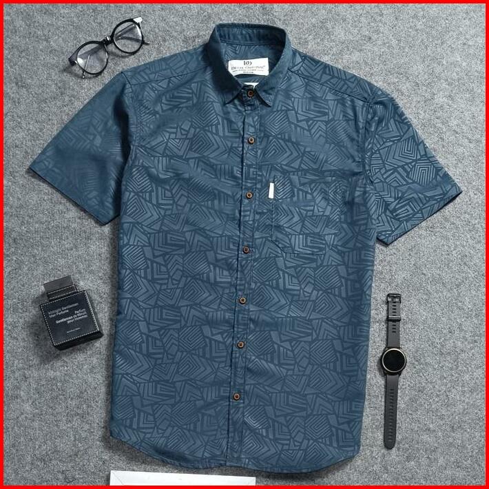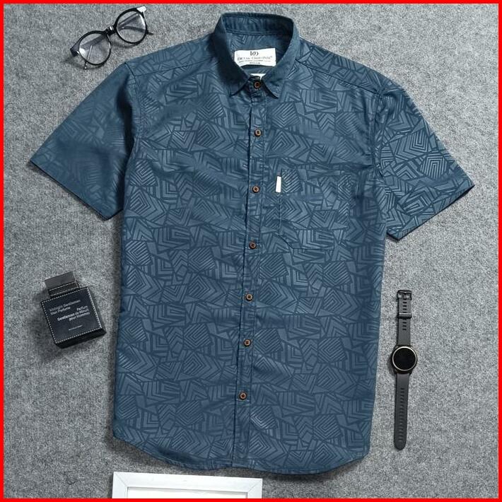 Kemeja Embos Sultan Lengan Pendek Pria Ash Grey Slim-fit