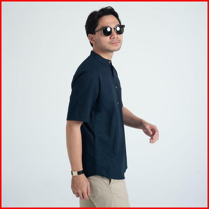 Kemeja Pria Polos Woodcutter Collarless Kerah Shanghai