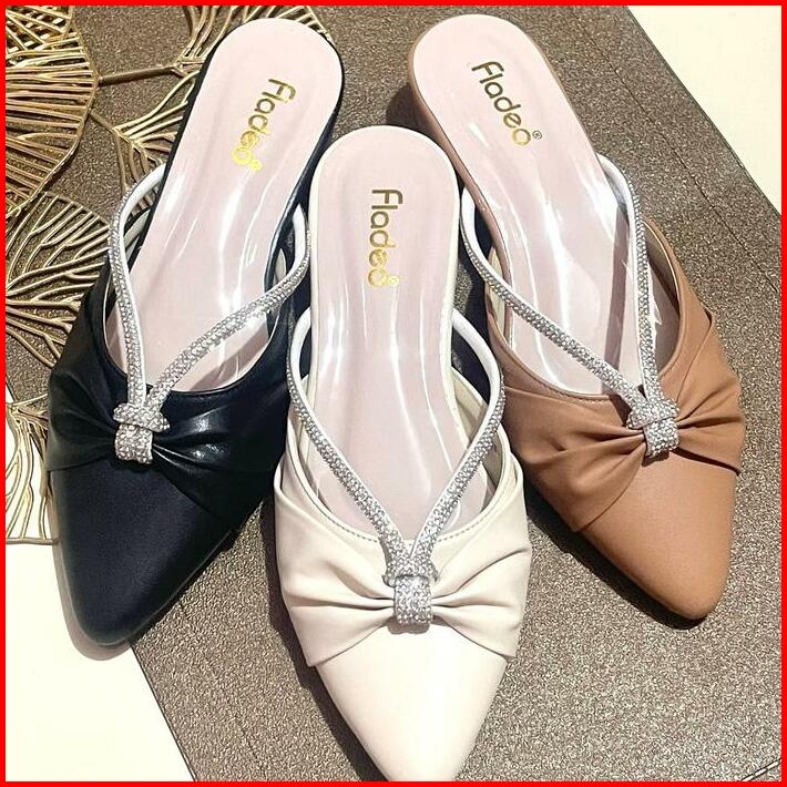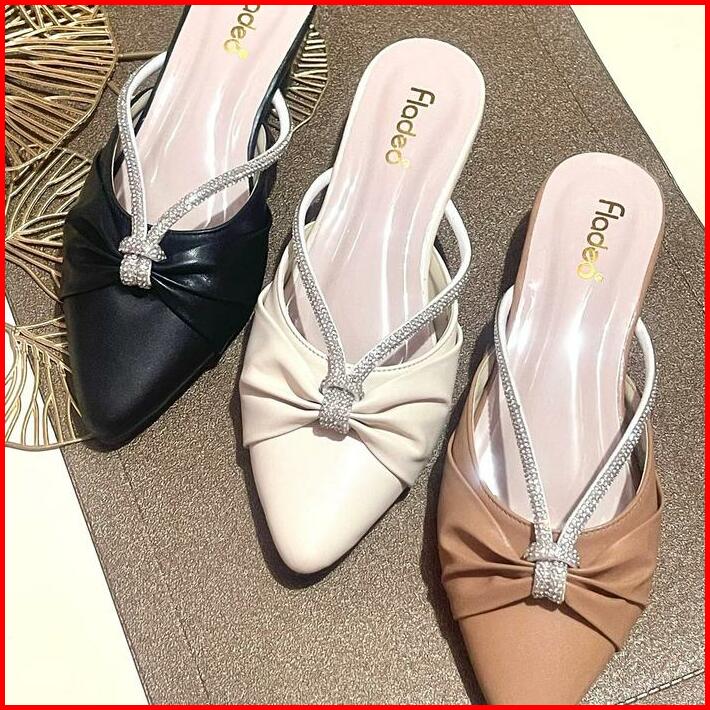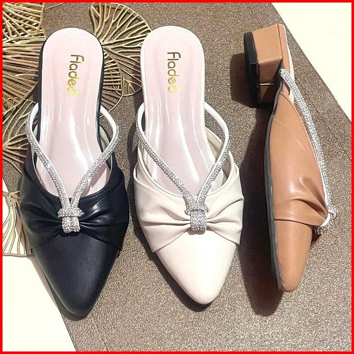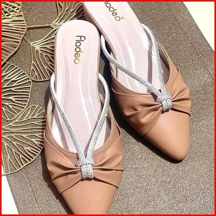 Sandal Wanita Terbaru Mules Heels Fladeo Permata Cantik 3cm Shoes Pesta