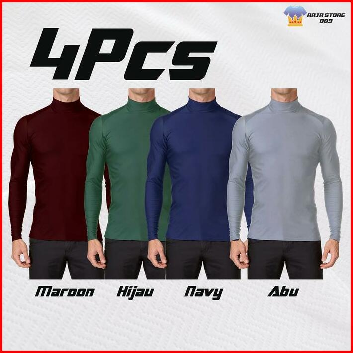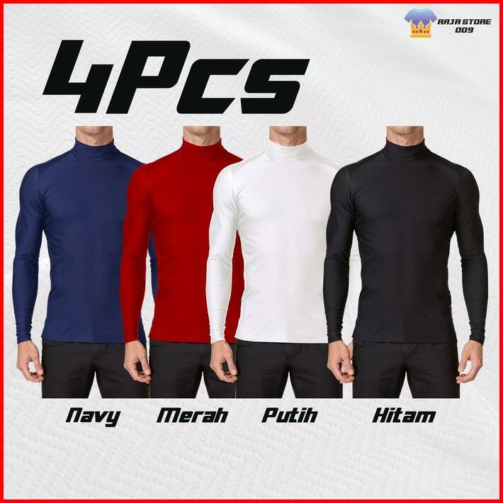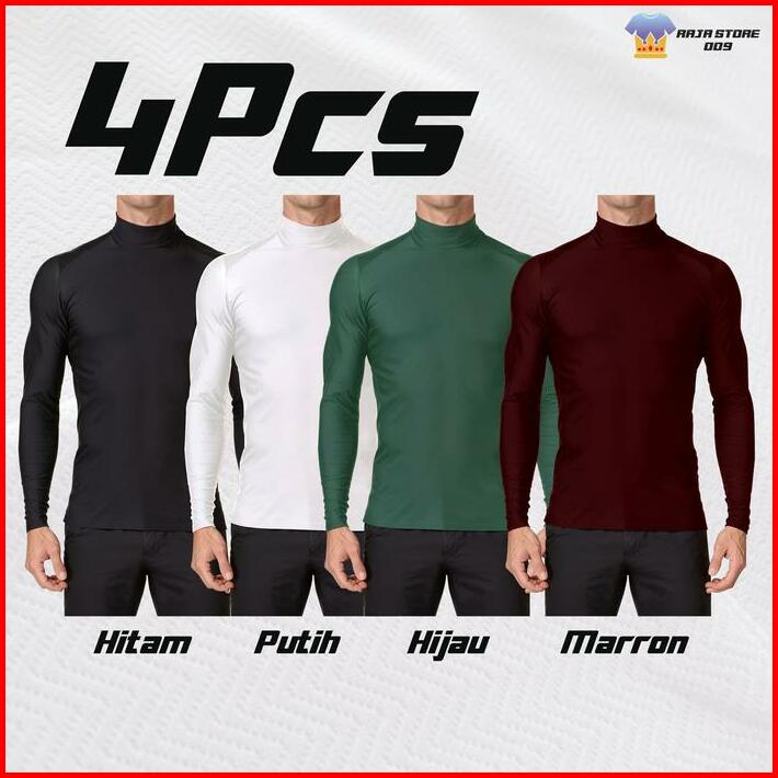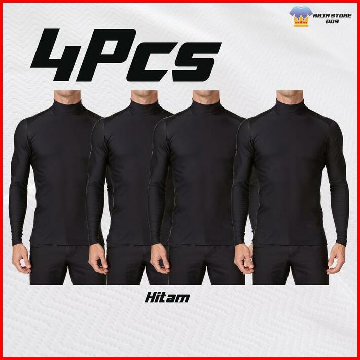 Paket 4 Pcs Manset Baju Olahraga Gym Pria Lengan Panjang Baselayer Kaos Pakaian Sport Compression Shirt Gym